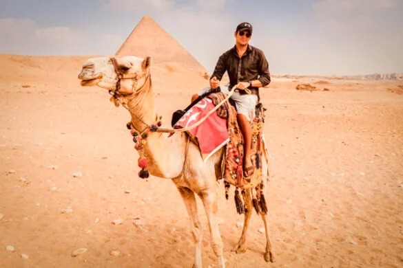 • Riding a camel to the Great Pyramids of Giza in Egypt,