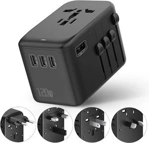 This travel adapter works in 180+ countries. So far, I haven’t found a destination where it doesn’t work! It has 4 USB ports and it’s 120W, so it has enough power to charge laptops through USB-C. If you’re looking for a cheaper adapter that’s also good, here is what my wife uses.